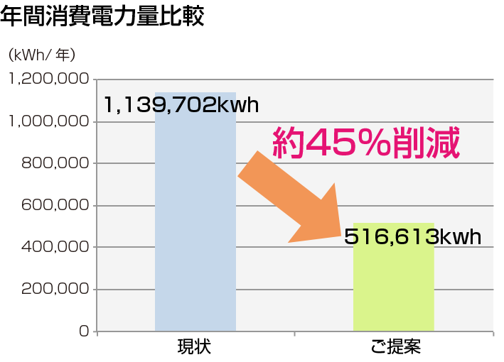 蛍光灯照明等からLED照明への切り替えを行うことにより、照明の照度アップ、電気料のコストダウン、エネルギーの使用量の低減により、省エネ・CO₂排出量削減のご提案をいたします。